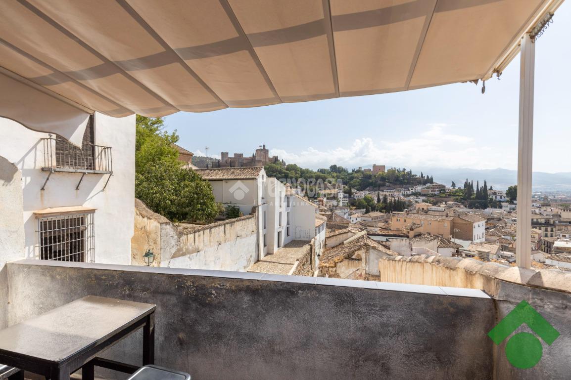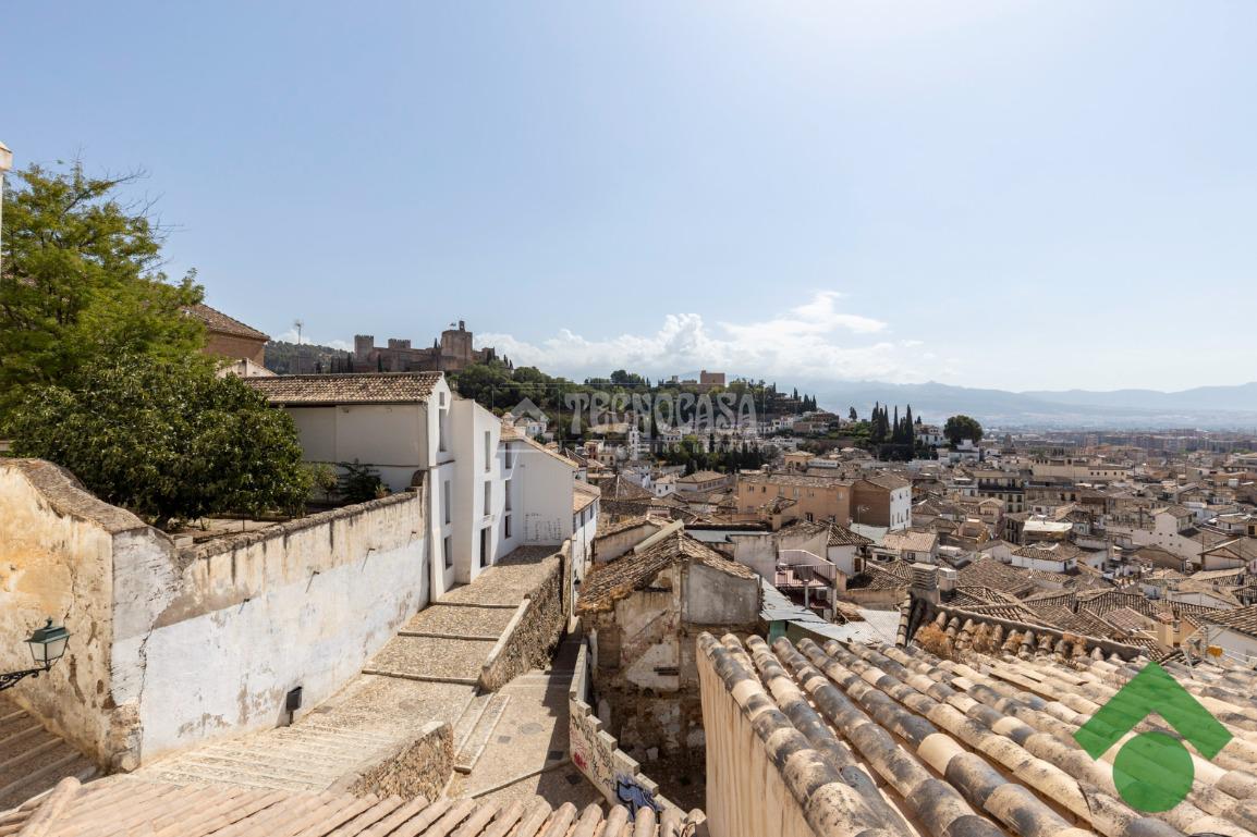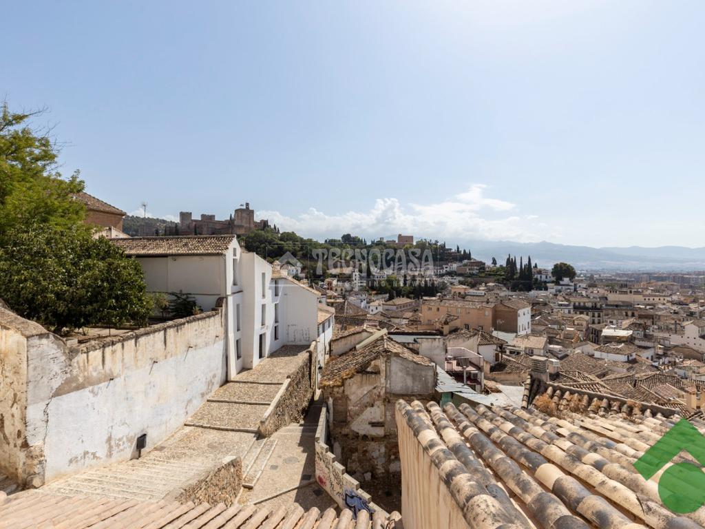 Se pone en venta un edificio completo que cuenta con tres plantas y una buhardilla que da acceso a la terraza teniendo vistas increíbles hacia la Alhambra.