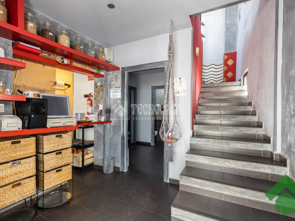 En la siguiente planta dispone del recibidor del negocio, cocina, almacén y dos baños.